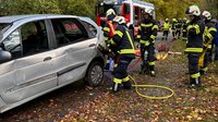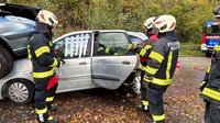 Nach dem Eintreffen am Übungsort wurde zunächst die Rettung der im Fahrzeug eingeschlossenen Person durchgeführt. Diese Aufgabe übernahm die Feuerwehr Neustift mit technischem Gerät und koordinierter Mannschaftsleistung.