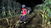 Die Feuerwehren wurden mit dem Alarmstichwort „Verkehrsunfall mit eingeklemmter Person“ alarmiert. Ein Pkw war aus bislang ungeklärter Ursache von der Fahrbahn abgekommen und in einem angrenzenden Maisfeld zum Stillstand gekommen. Aufgrund der Alarmmeldung wurde zunächst von einem mehrfachen Überschlag ausgegangen.